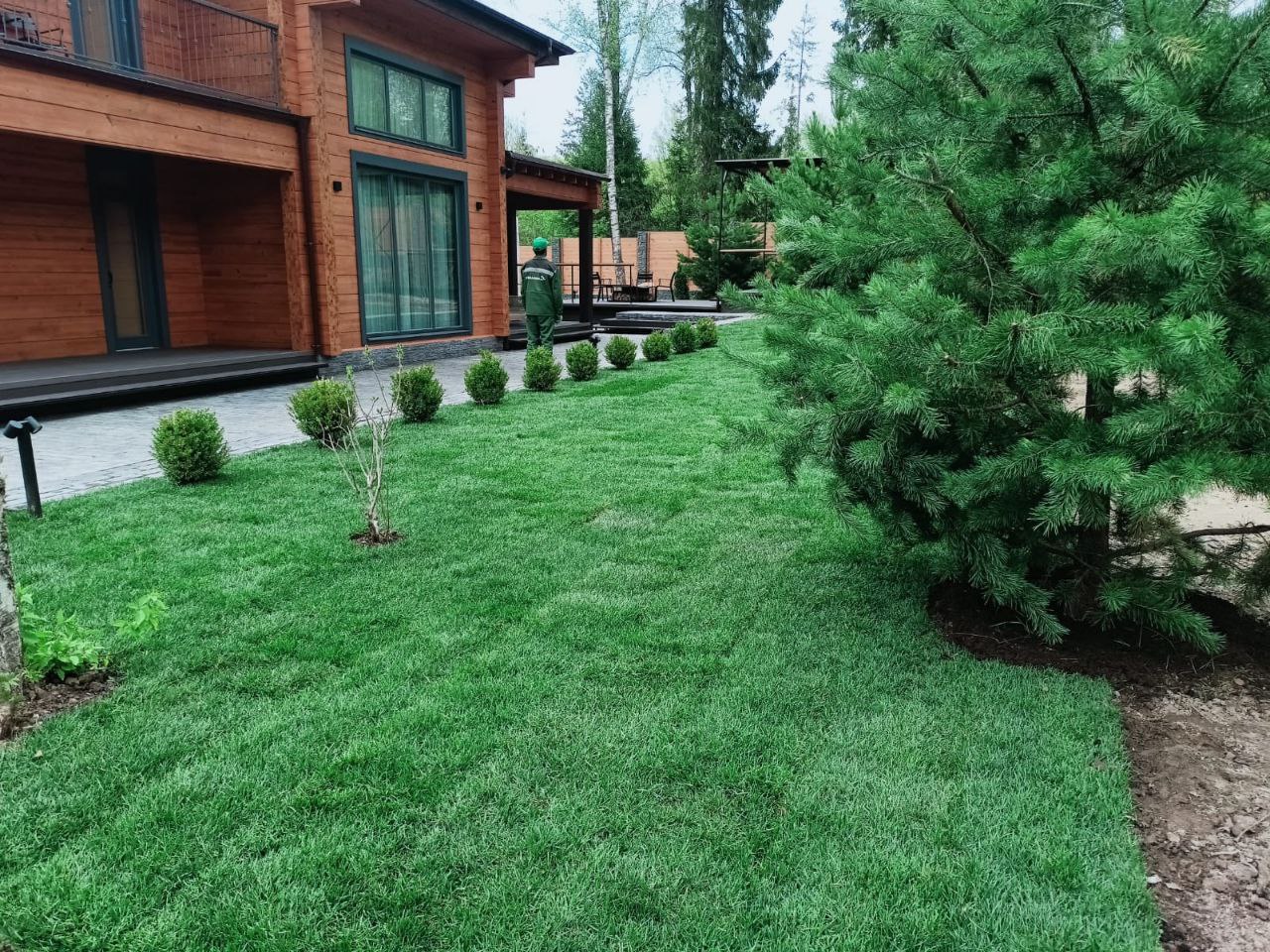 - Газон состоит из специально подобранных сортов трав, выдерживающих недостаток солнечного света